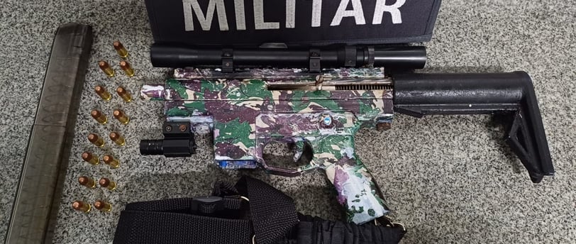 Uma denúncia anônima levou a Polícia Militar de Itaipava a um terreno baldio onde, segundo informações, havia uma arma de fogo enterrada. No local, os militares encontraram uma submetralhadora de fabricação caseira escondida sob a terra.